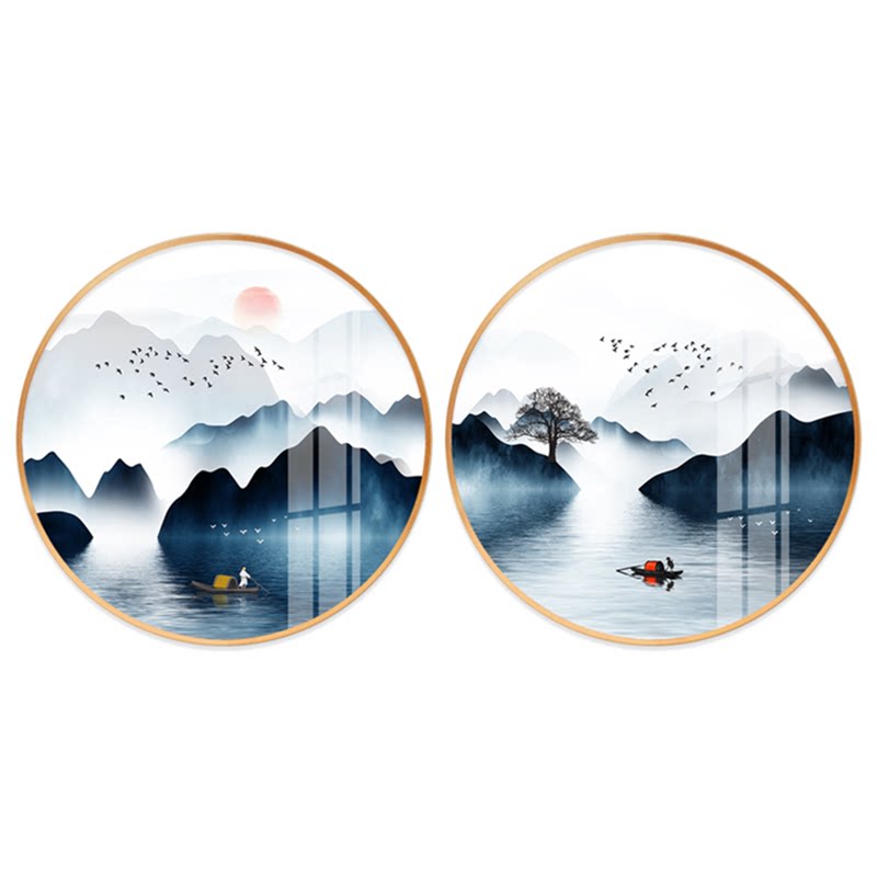 New Chinese meditation Decoration Painting Round Landscape Jiangnan Painting Dining Hall Hung Painting Dining Room Water Ink Xuanguan Scenery Fresco Boat