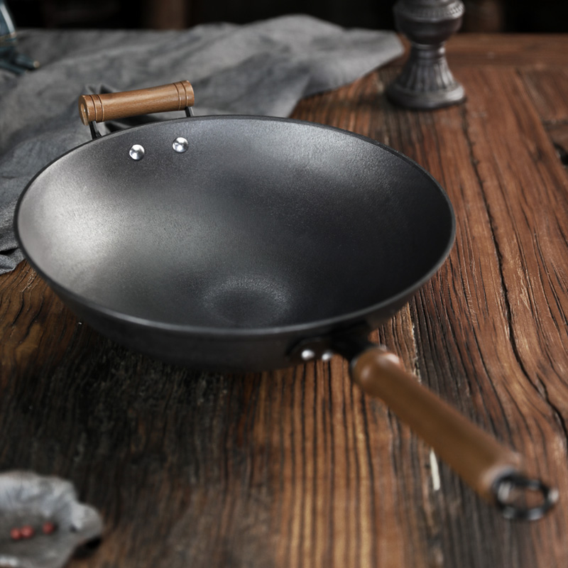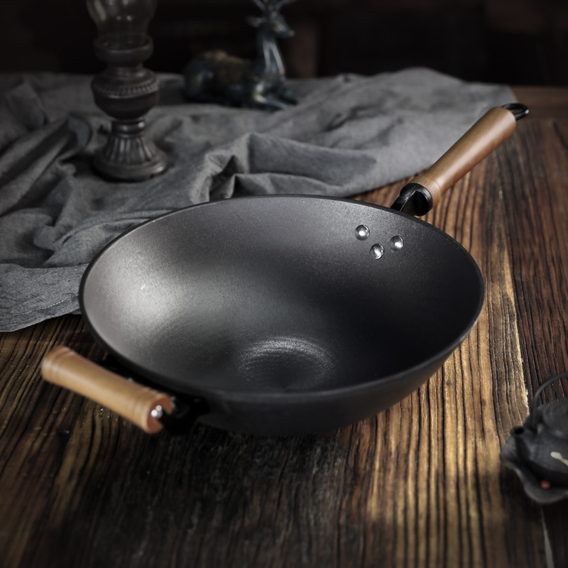 Tiger Father Dog Son Iron Pot Home Old Fashioned Wok Round Bottom Uncoated Thickened Cast Iron Pan Non-stick Pan Pig Iron Wok