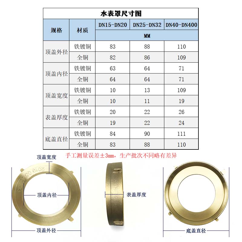 DN15-20 Water meter universal copper-plated cover DN25-32 water meter universal copper-plated cover DN40 above water meter universal copper-plated cover DN15-20 water meter universal copper-plated cover D