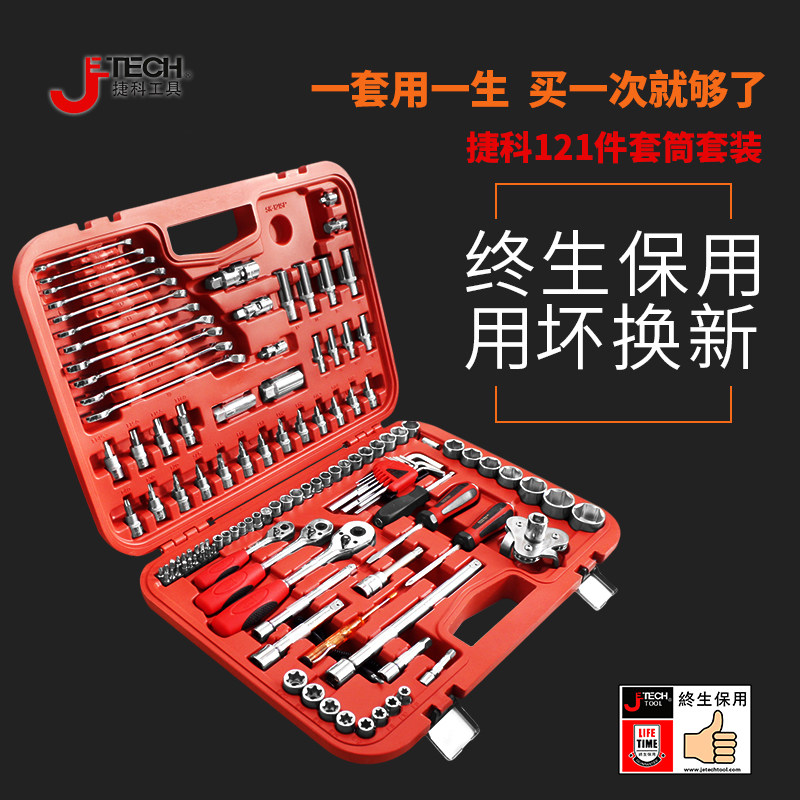 Jieke Tools Auto Repair 121 Piece Sleeve Set Auto Protection Tool Set Vehicle Multi-Function Tool Set Repair Vehicle