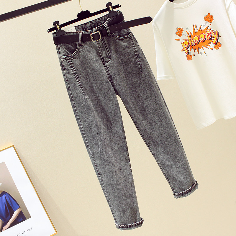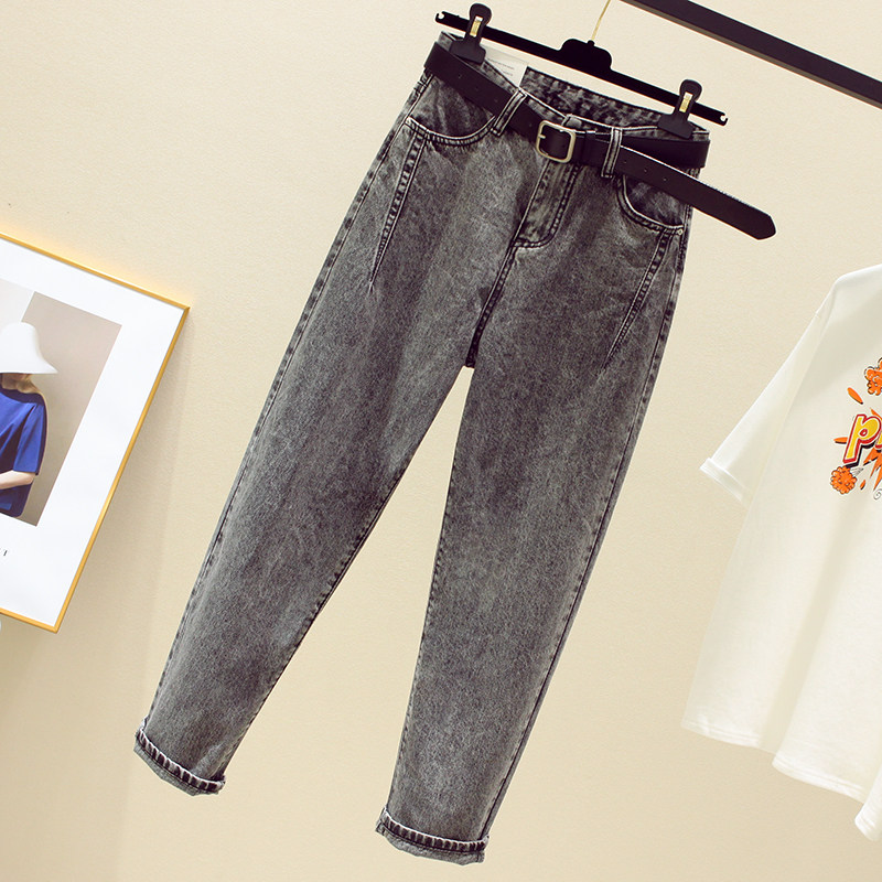 Korean high-waisted jeans women's 2020 spring new straight tube loose and thin nine points Harlan dad lob pants trend