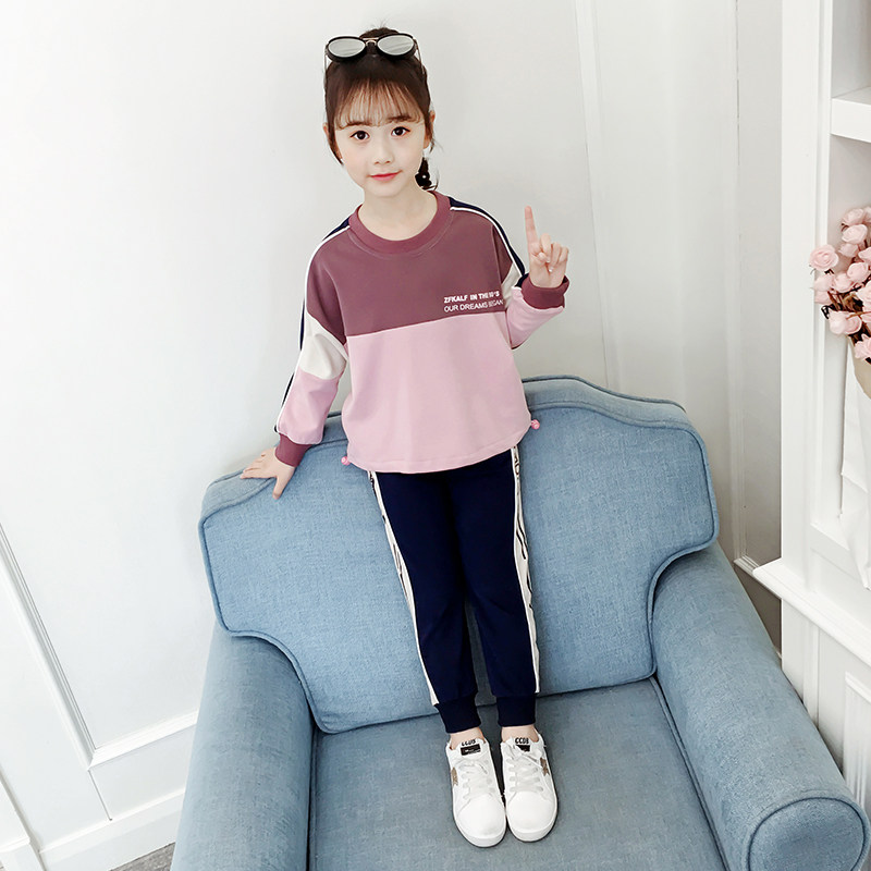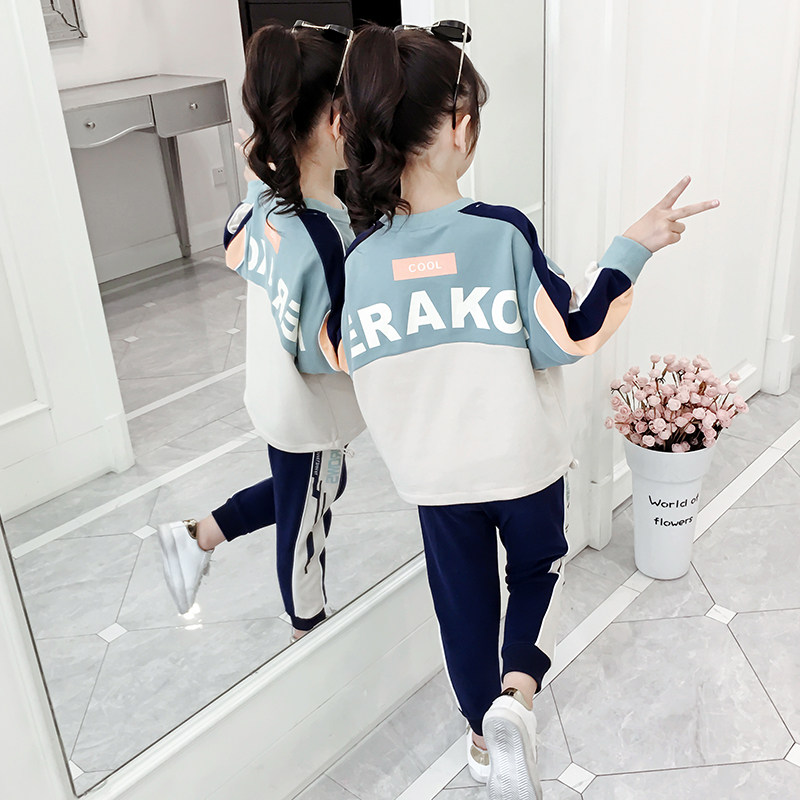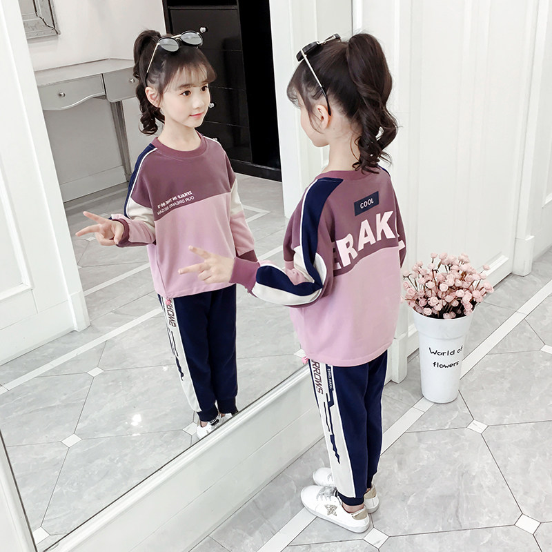 Girl Suit 2022 New Spring Autumn Clothing CUHK Child Casual Sports Foreign Pie Girl Child Loose two sets of damp