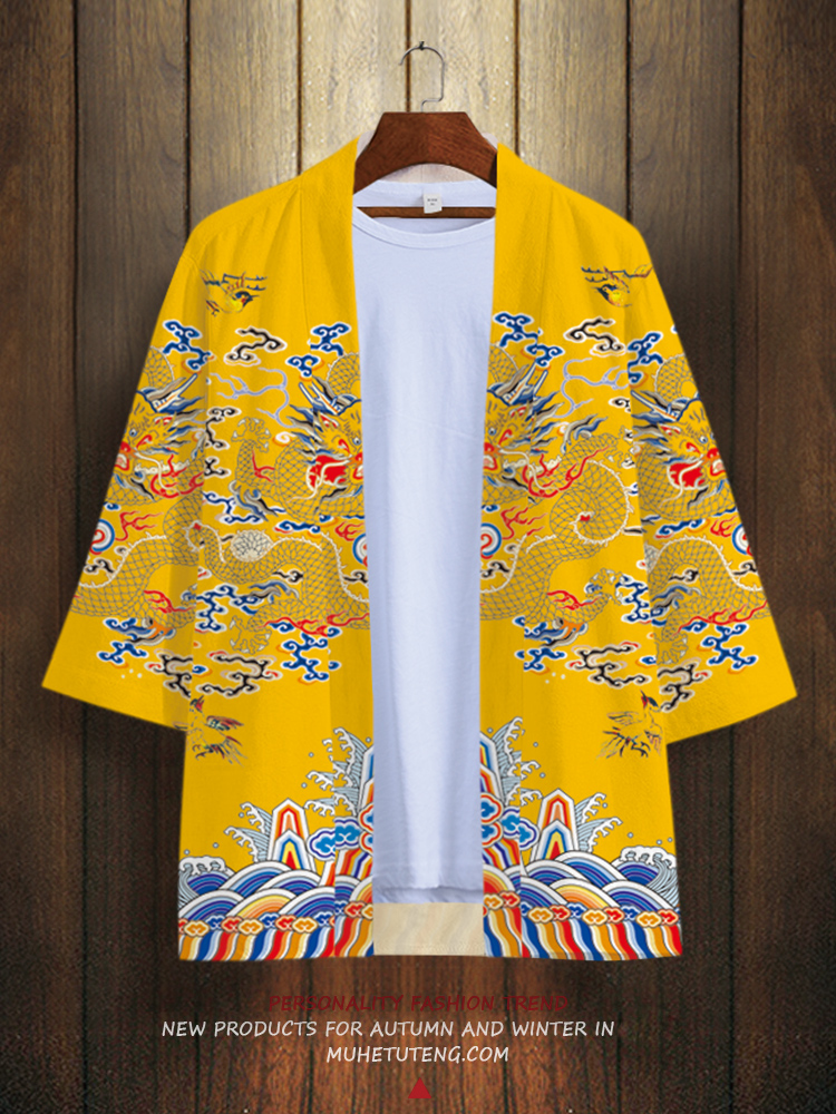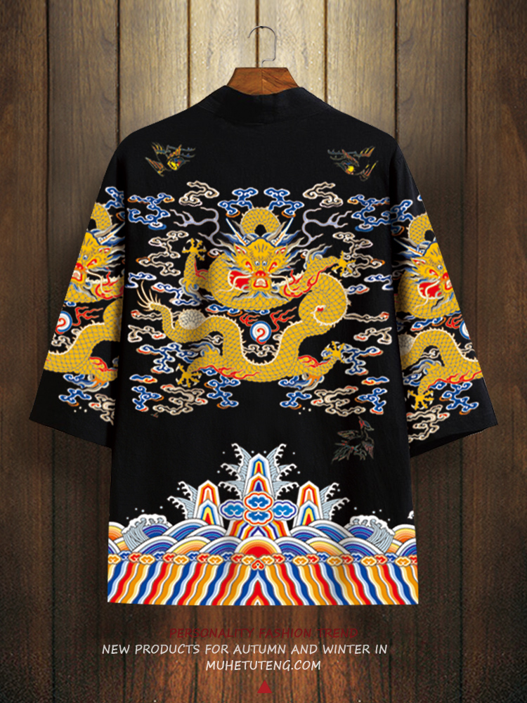 Chinese style retro jacket men's dragon robe suit ancient style Taoist robe sunscreen cloak Hanfu emperor clothes costumes