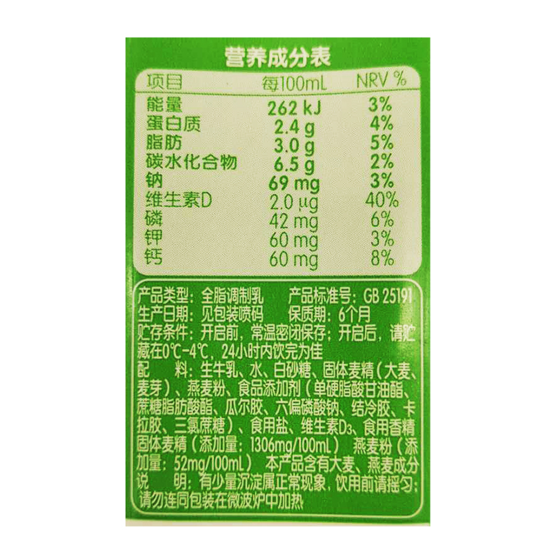 Mengniu Breakfast Wheat Fragrant Milk 250ml * 16 boxes