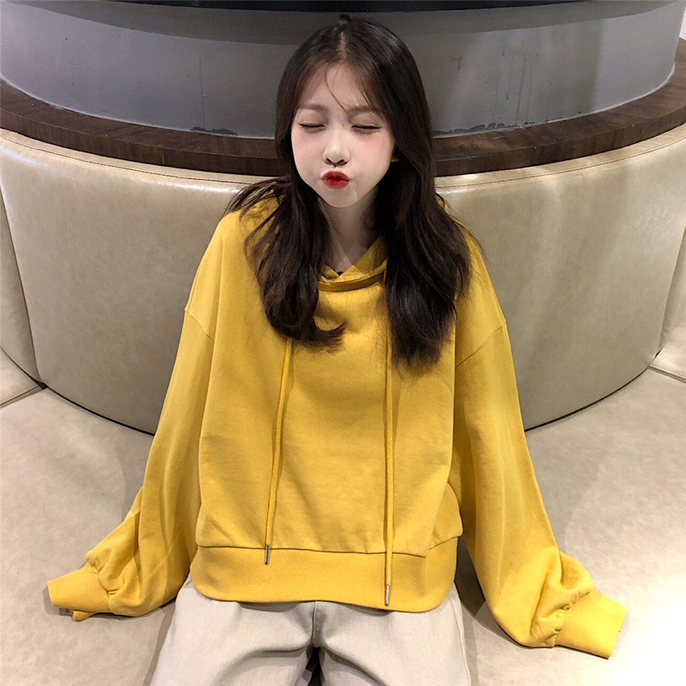 Short Dew Navel Jersey Woman Hat Spring Autumn Thin section Long sleeves 2020 Korean version loose bf Lazy Breeze with a very fairy blouse