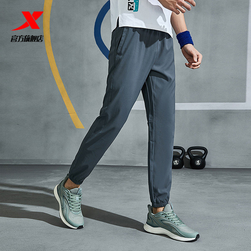 XTEP sports pants men's pants 2021 summer thin ice silk pants Men's quick-drying leisure woven drawstring running pants