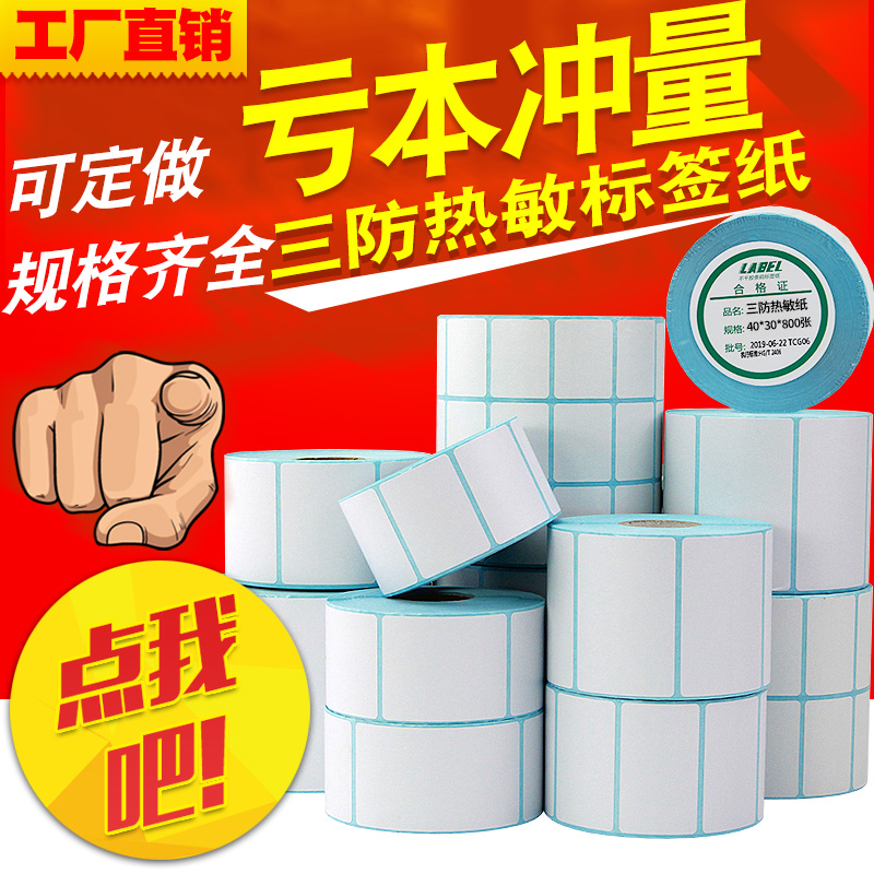 Three anti-heat label paper roll 60x40*30 20 70*50 25 100x100x150 self-adhesive barcode printer Express supermarket weigh paper price paste paper custom color waterproof 80