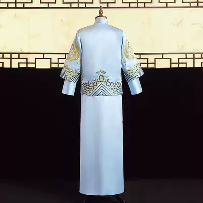 Xiuhe clothing men 2021 Winter new wedding toast service groom dress Dragon Phoenix hanging costume blue show kimono