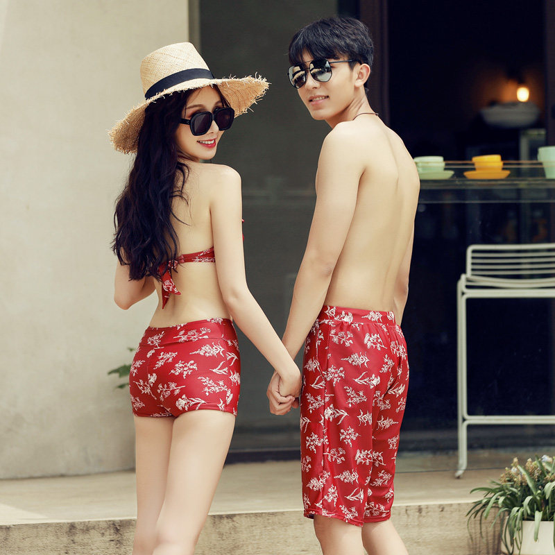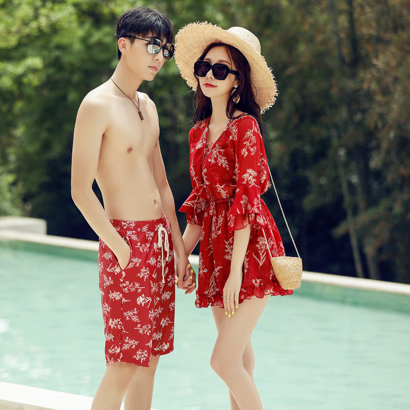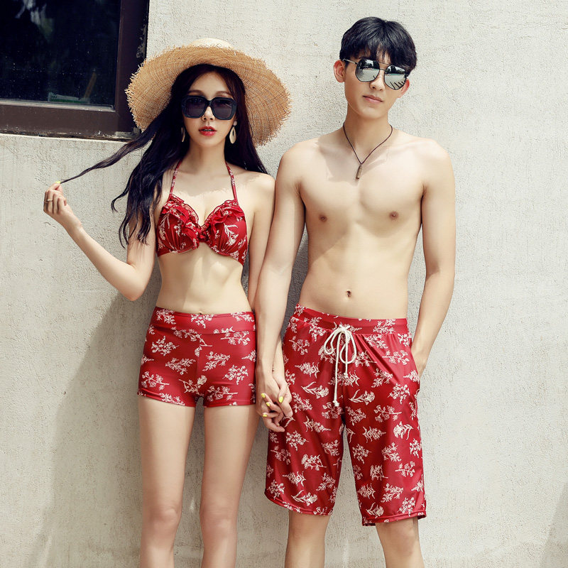 Couple swimsuit female super fairy cover belly slim bikini three-piece set long sleeves sunscreen swimsuit men's beach pants hot spring