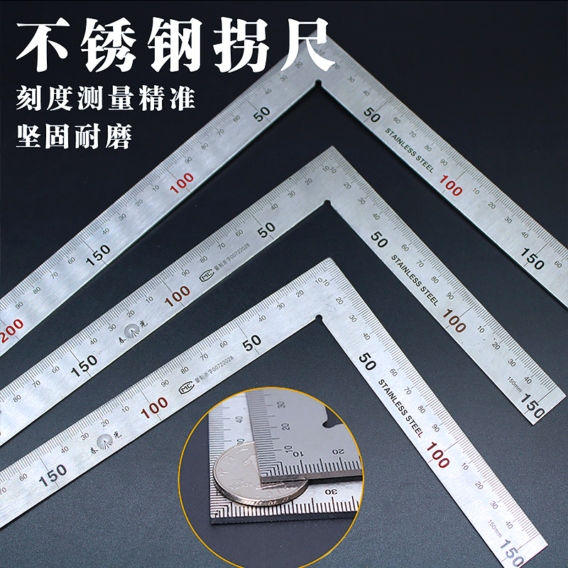 Woodworking angle ruler stainless steel triangular ruler thickened angle ruler 90-degree turning ruler high-precision right-angle plate ruler L-shaped ruler