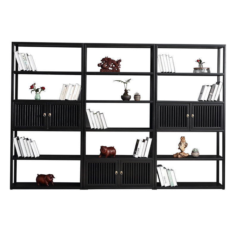 Pair of open bookshelves Three combinations (black sandalwood) pair open bookshelves left and right A group of (black sandalwood) pair of open bookshelves left and right A pair of (black sandalwood) pair of open bookshelves left to the left of the open bookshelf.