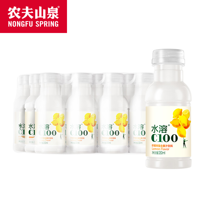 Farmer Mountain Spring water soluble c100 composite juice drink 250ml*12 bottles of lemon flavor vitamin C drink