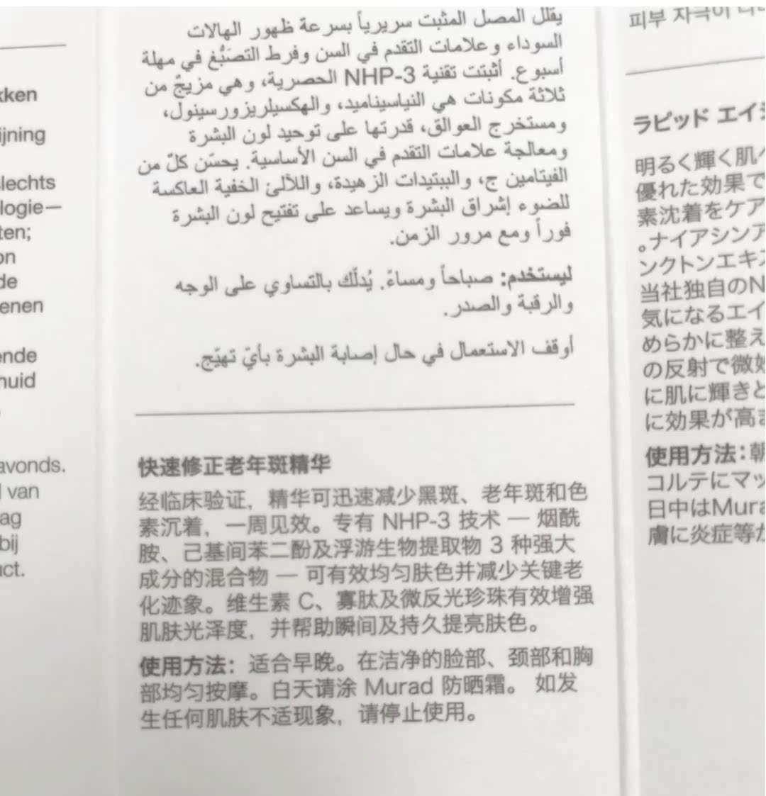 Murad Mullachen White Light Spots Essence Nicotinamide VC Emulsion Improves Dark Yellow Ti Bright Complexion Dark Spot Antioxidant