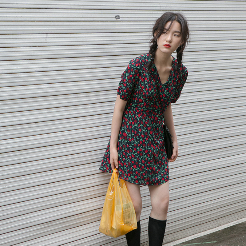 Special offer Original 138 yuan Slender vitality bellflower fairy tide gentle wind Yamamoto French niche floral dress - Taobao