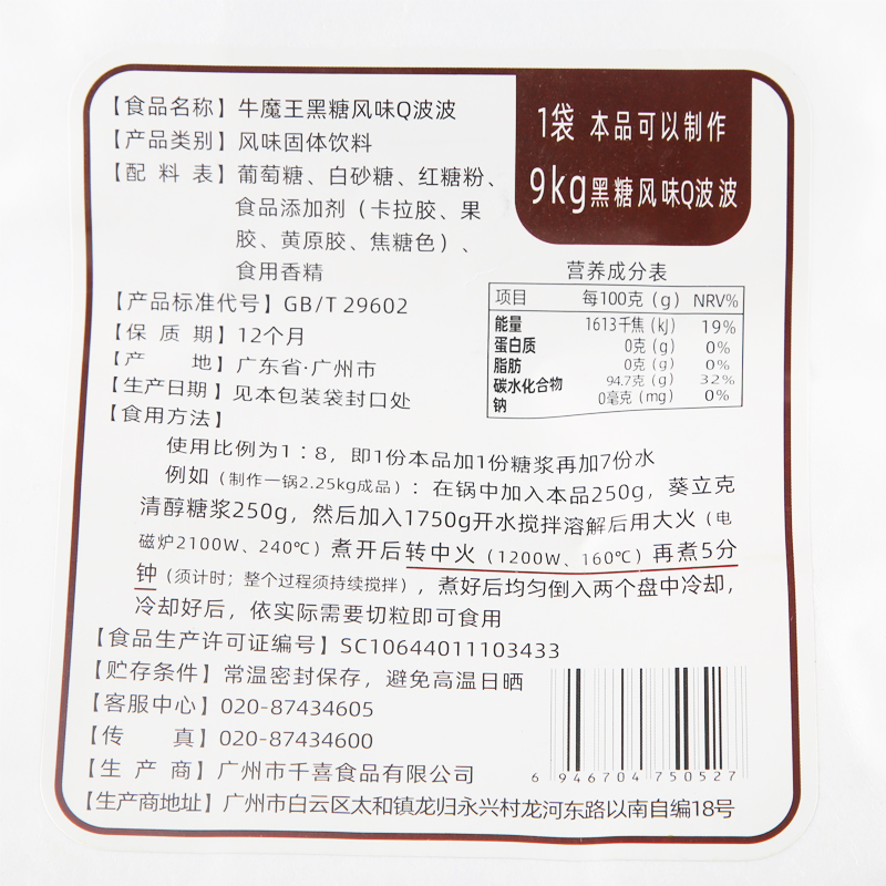 Q wave black sugar flavor black powder black brick powder caramel frozen jelly powder drilling tea crystal powder