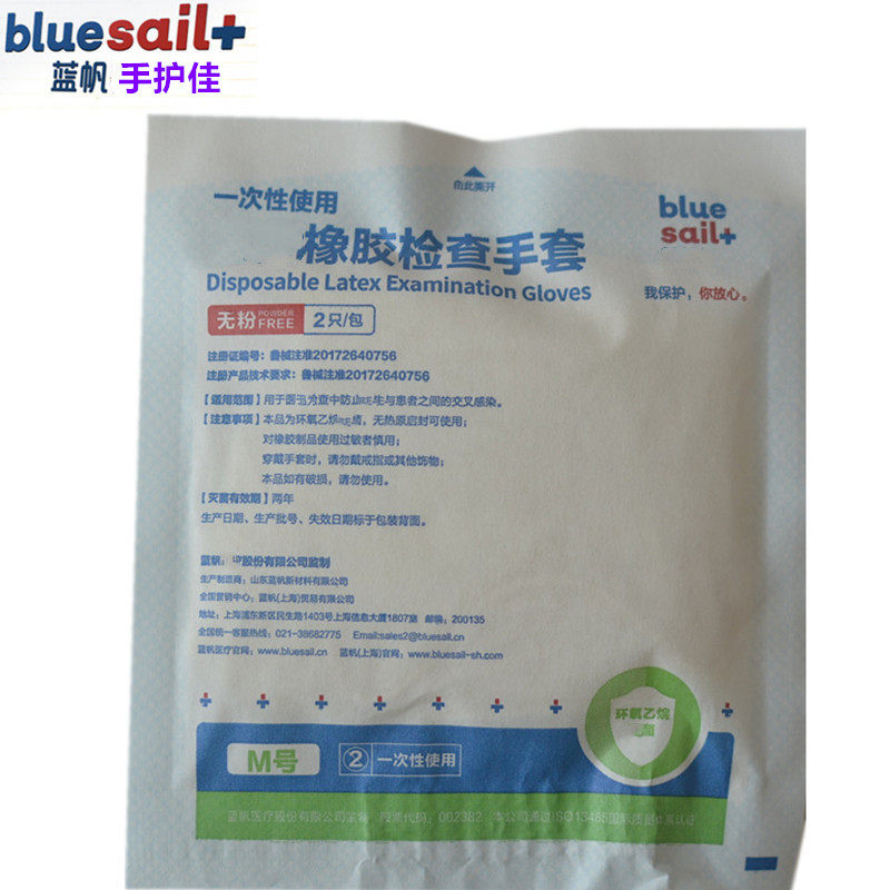 Blue sail disposable powder-free gloves Latex oral food household experiment stick hand tight hand rubber independent bag high elastic