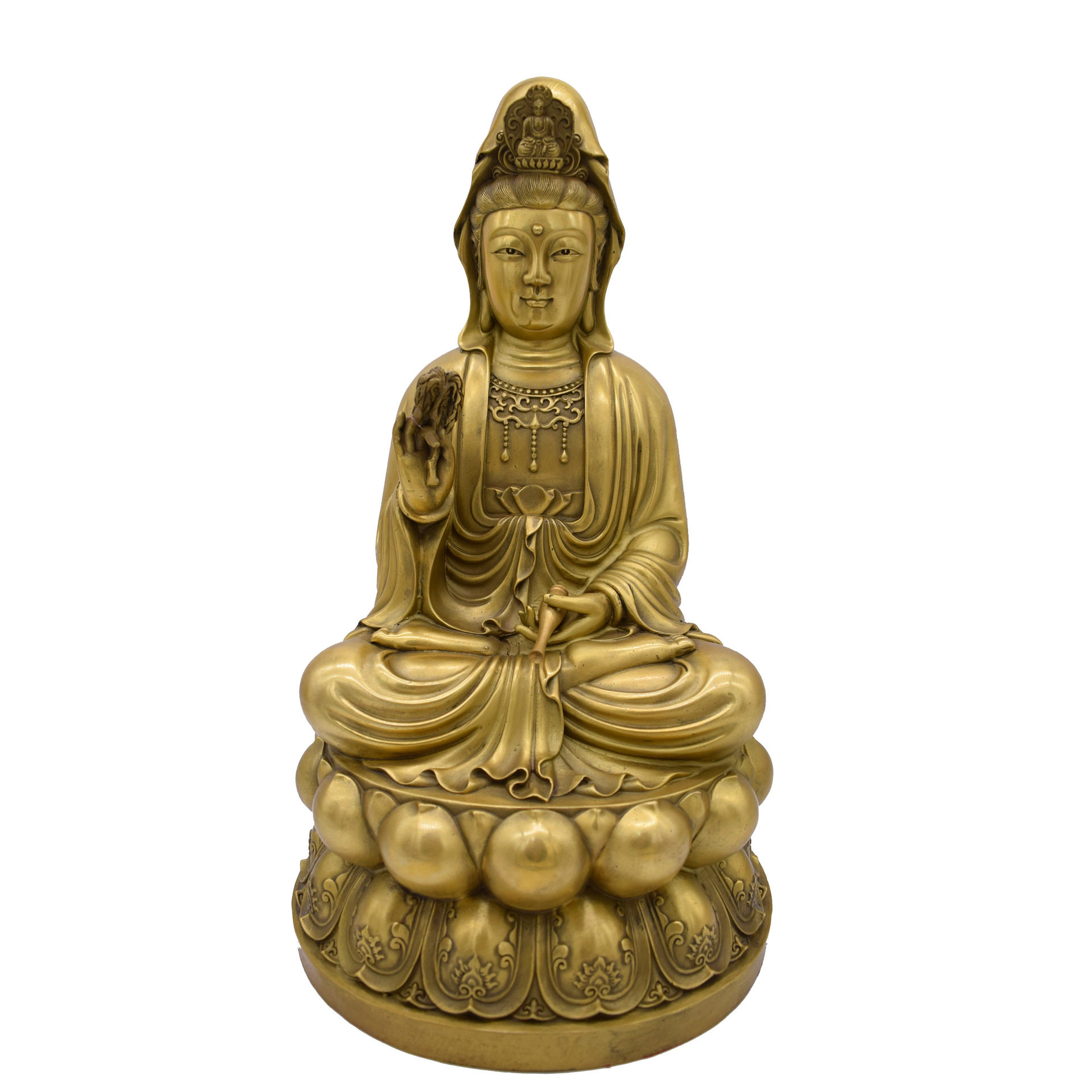 Xiang Lion Crafts Pure Bronze Statue of Guanyin Buddha Swaying Pieces Bronze Guanyin