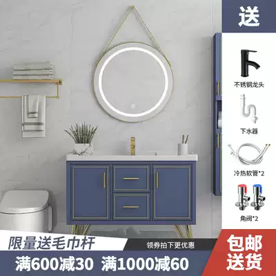 Nordic luxury bathroom cabinet floor-to-ceiling cosmetic room wash basin cabinet combination wash face wash table smart bathroom round mirror