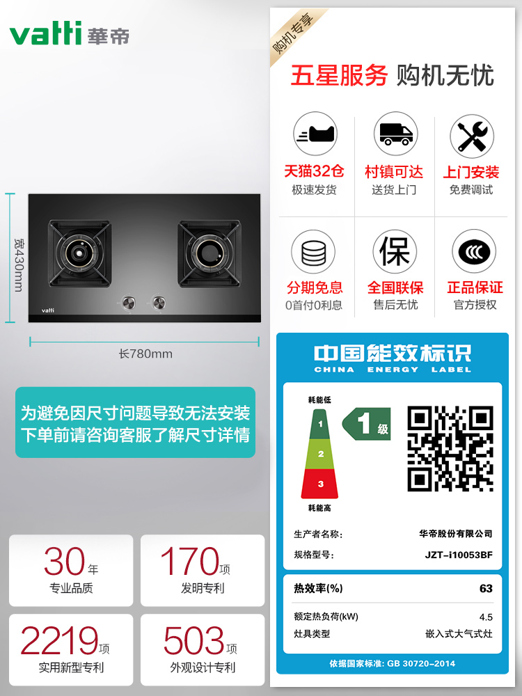 Watigas stove i10053BF anti-dry-heating embedded double-mouth gas stove gas stove gas stove gas stove cooker