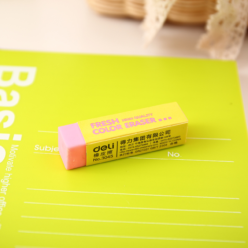 Deli long eraser rubs clean without leaving a trace Cartoon cute pattern Children's school supplies like leather rubs no debris Students test with 2B eraser Primary school stationery supplies