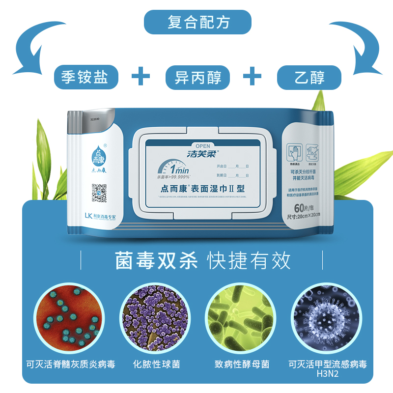 Jie fu soft surface wet wipes kitchen alcohol wet wipes disinfection sterilization household cleaning and hygiene affordable 60*2 packs