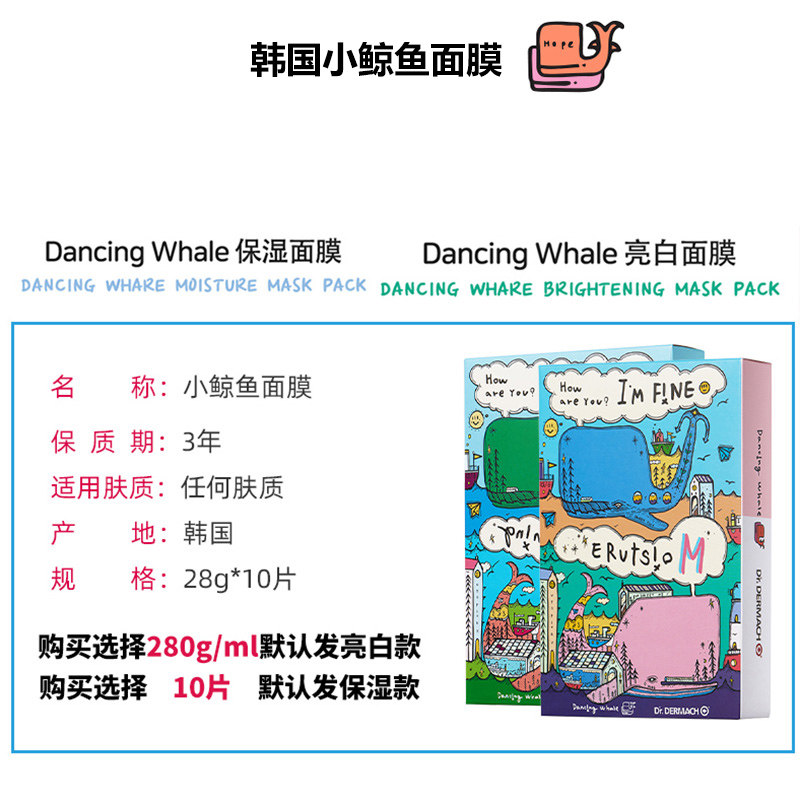 Little Whale Mask Hydrating and Moisturizing Cheongdam Dongdemeiqing Korea Moisturizing and Brightening Birth Hing Official Flagship Female Wei
