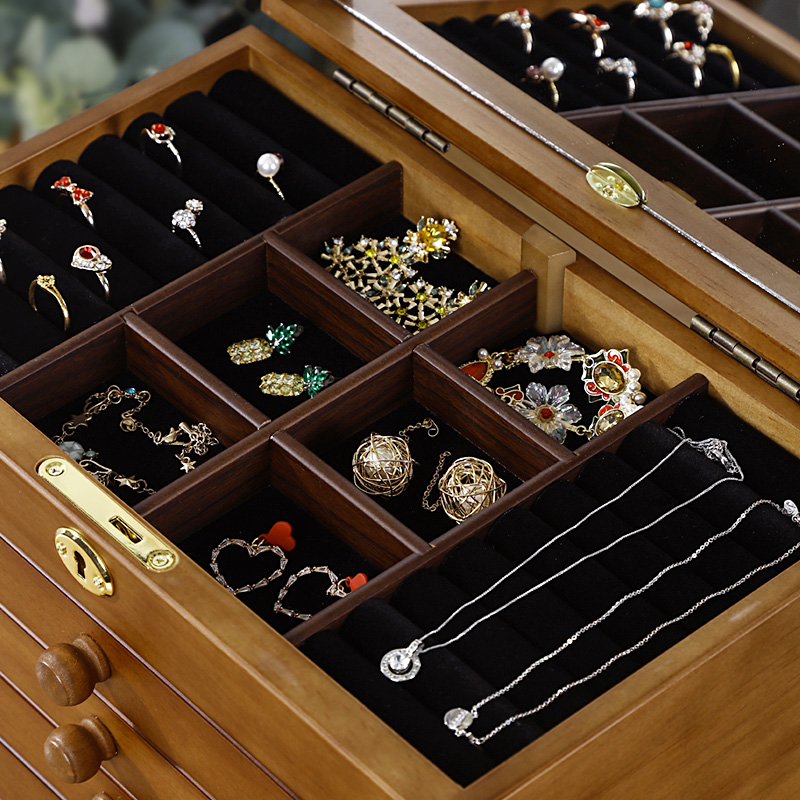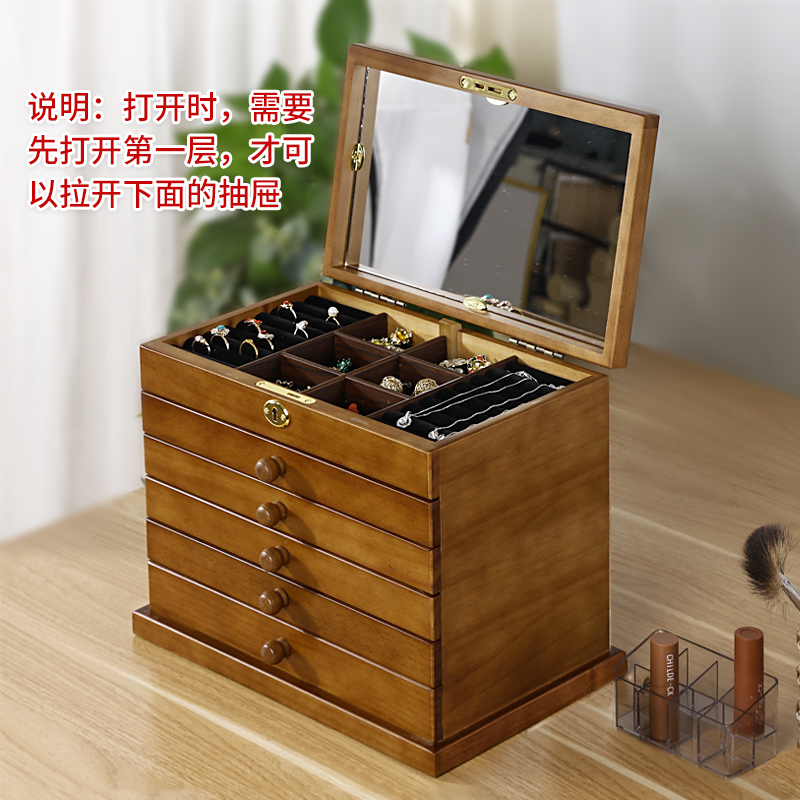 Multifunctional oversized jewelry box storage box solid wood necklace earrings jewelry ear pin hairpin packing box home
