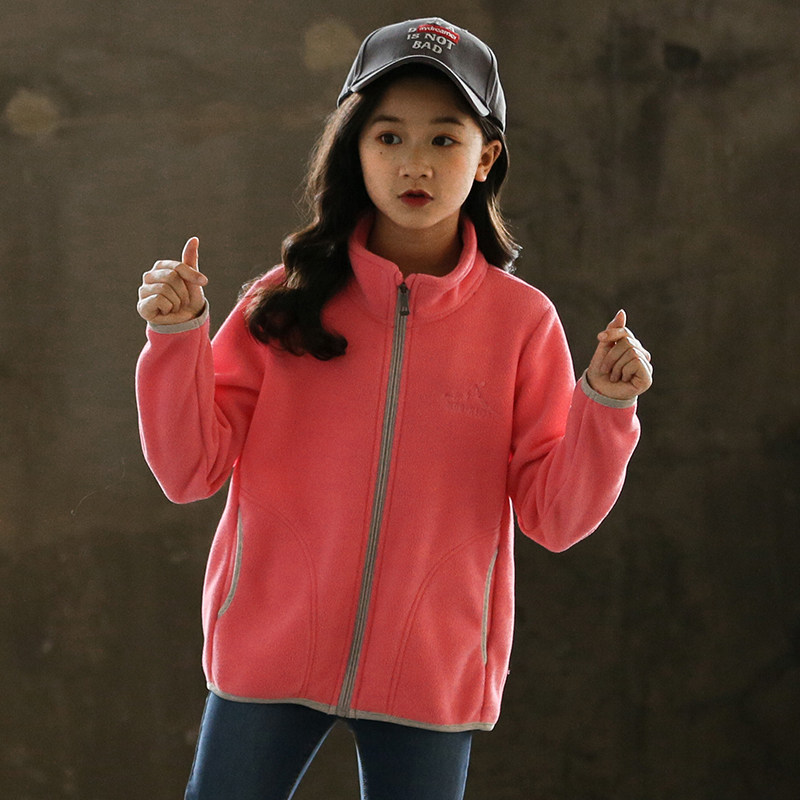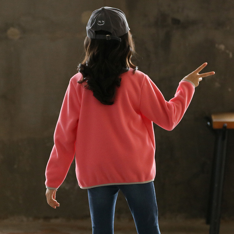 Girl Jacket 2022 Fall New Child Grip Suede Windproof Clothing Big Boy Rocking Grain Suede Thickened Jacket