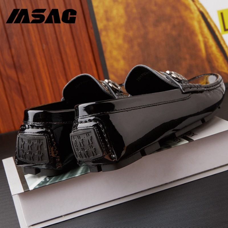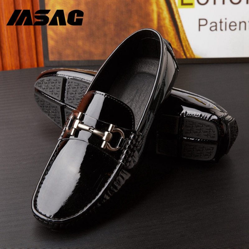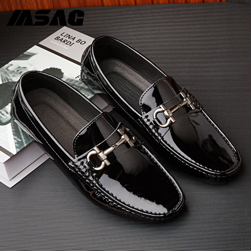 Men's bright leather patent leather peas shoes men's genuine leather boat shoes British men's shoes soft sole business casual leather shoes lazy trendy shoes