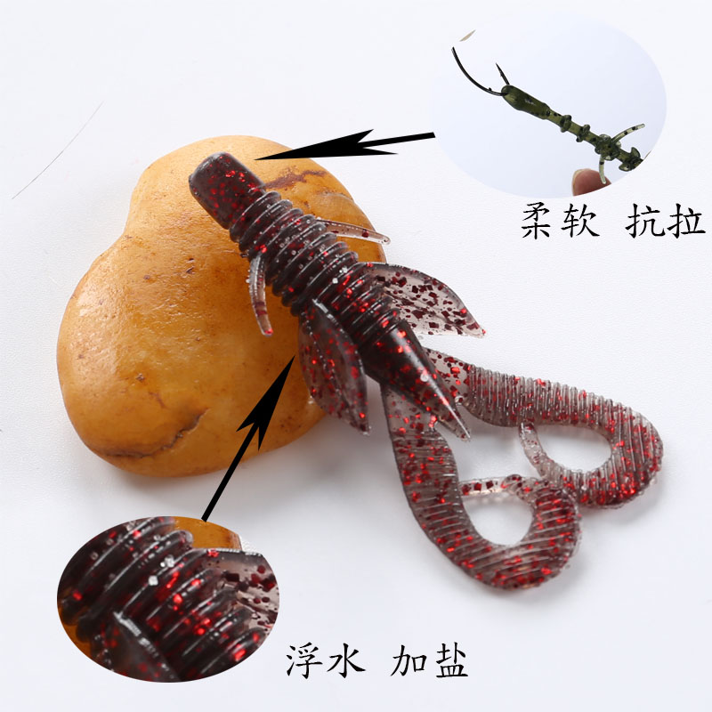 Dongding floating water shrimp new double-tailed floating water shrimp 2 6 inch NED Twin Roll Tail Bass fish pour the soft bait plus salt