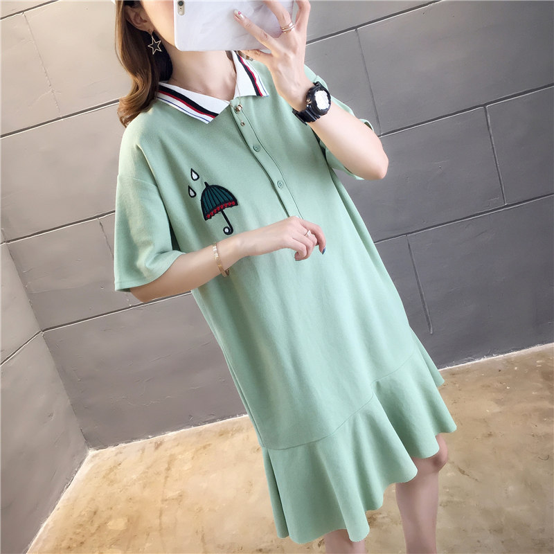 Maternity wear women's dress 2020 Korean version spring and summer mid-length version loose large size INS lapel skirt short-sleeved T-shirt