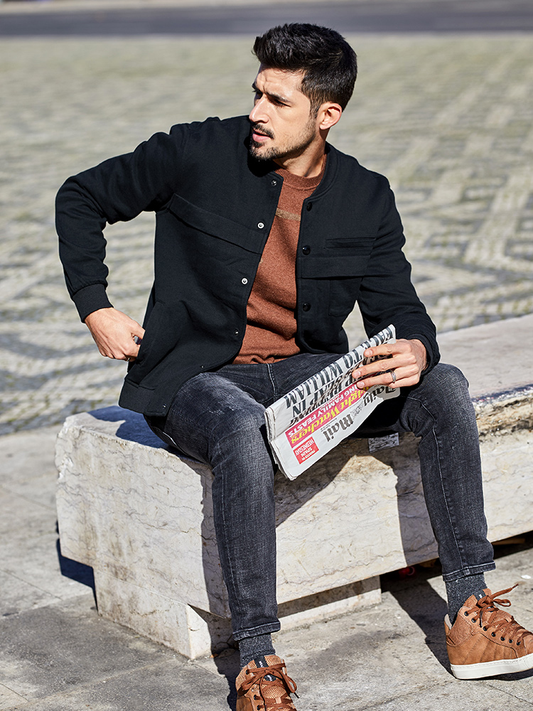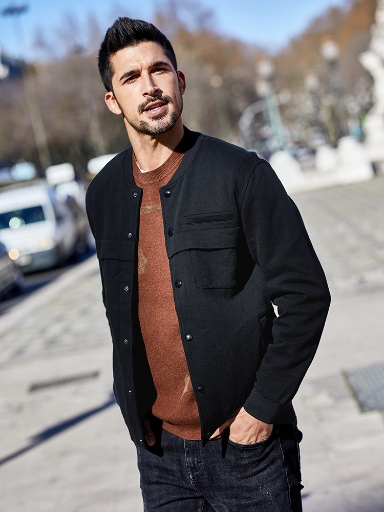 Special Offer] Men's Cardigan Sweater Men's Autumn Korean Style Slim Stand Collar Jacket Jacket Black Baseball Uniform 7010