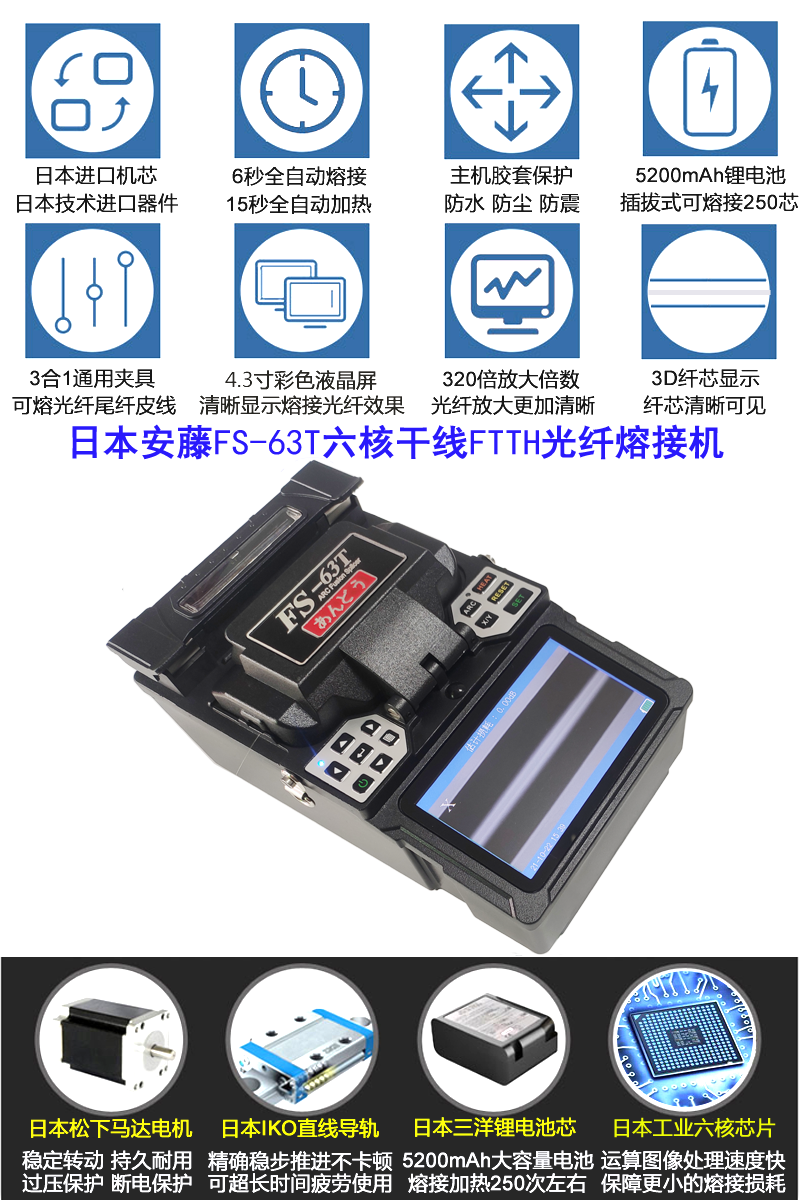 Japanese anto FS-62T 63T fully automatic six-core high-precision trunk FTTH fiber fusion machine melting machine