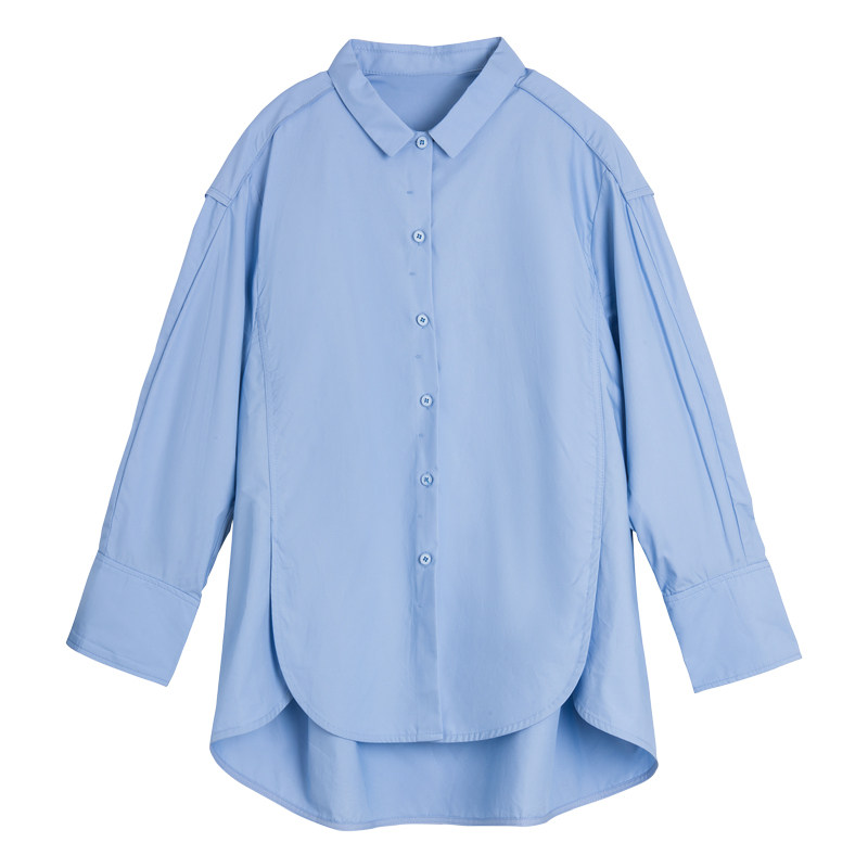 Fasilu 20SS blue shirt women's design sense niche loose and wild irregular French bubble sleeve top spring