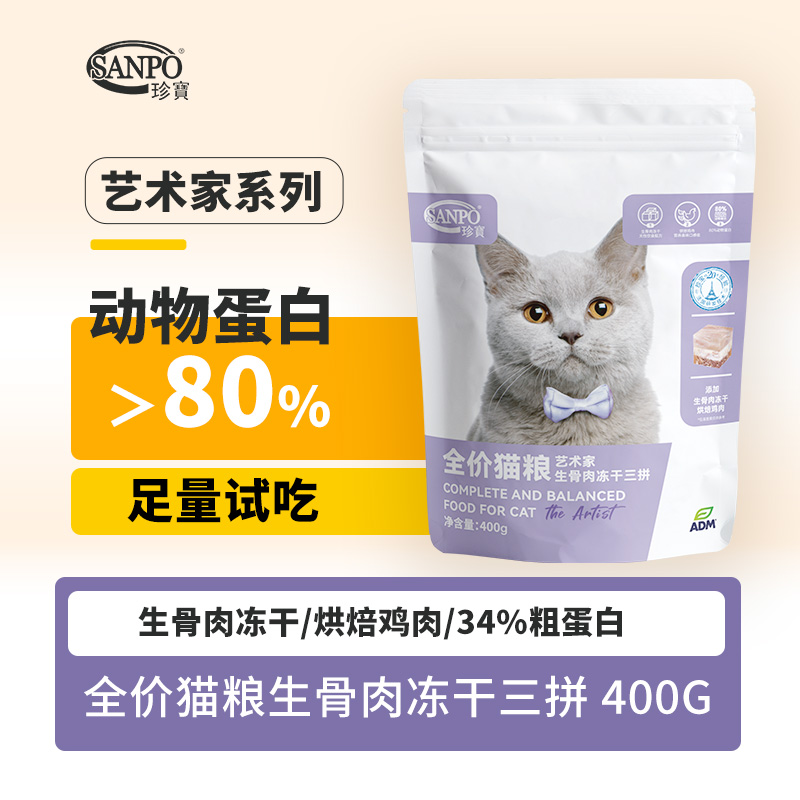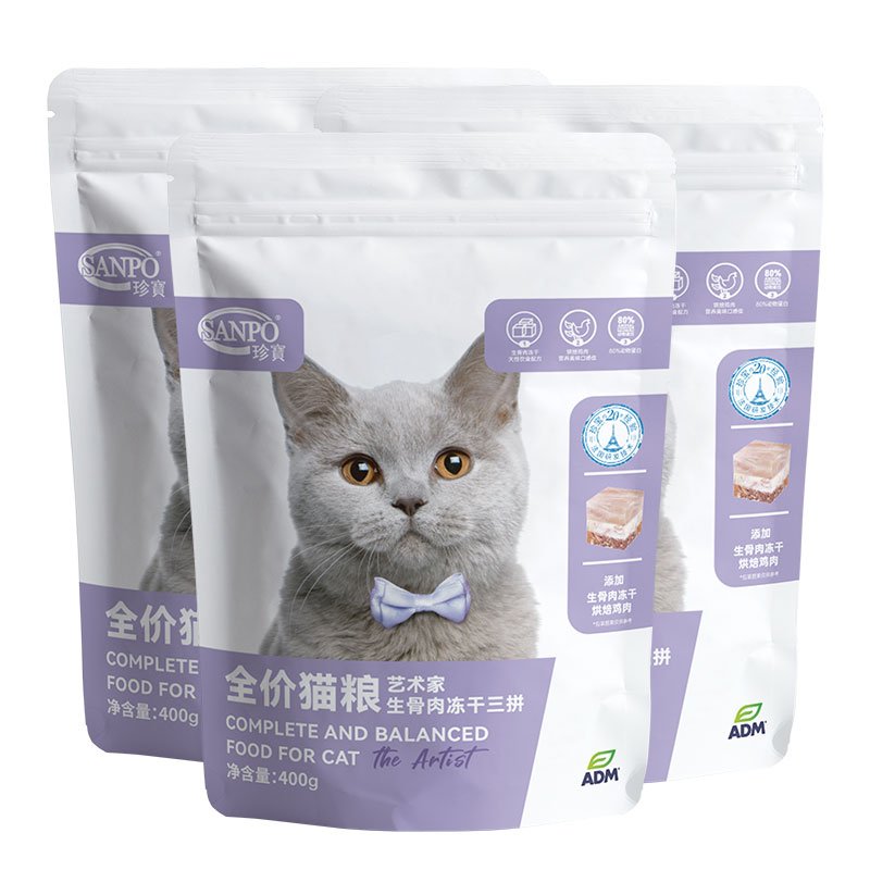 Adult general-purpose raw bone and meat freeze-dried three-piece full-price cat food 400g