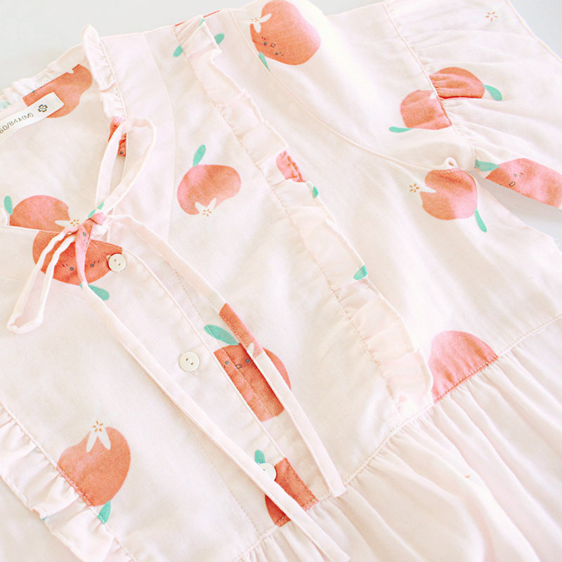 Cute spring summer thin section pure cotton double layer gauze flower honey peach short sleeve sleeping dress day department sweet and young girl wind home middress