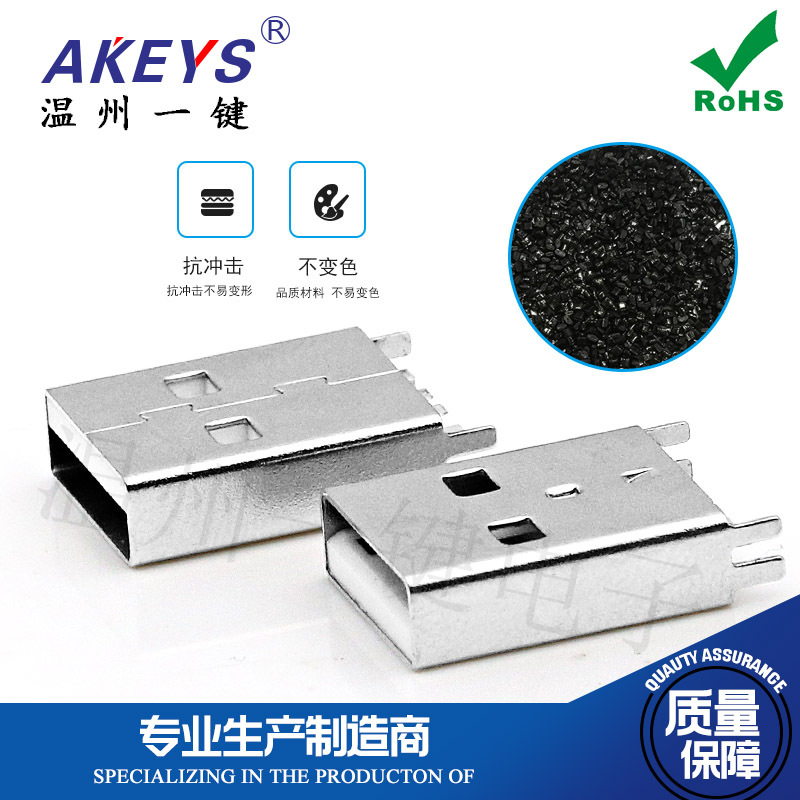 USB2 0A male 180-degree direct plug-in short body welding plate AF male vertical 4-pin plug-in board 15 0mm