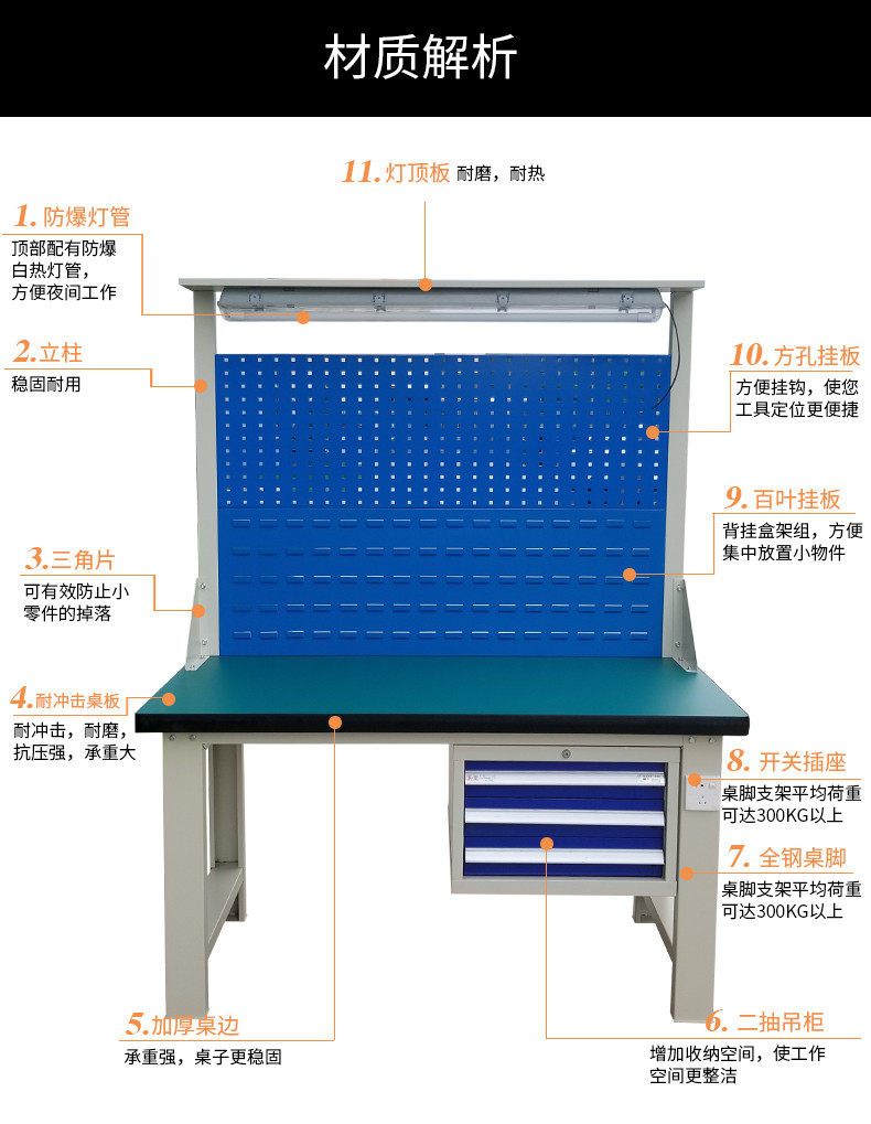 Workstation workshop heavy operation table stainless steel lamp frame anti-static working table Ningbo inspection counter