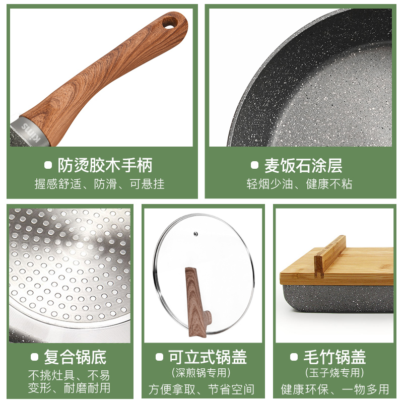 Maifan shiyuzi roast pot (free silicone spatula) Maifan shi yuzi roast pot (gift silicone shovel + oil brush + egg beater) gas induction cooker universal Maifan shi yuzi roast pot + lid (free silicone spatula) Maifan shi yuzi roast pot + lid (gift silicone spatula + oil brush + egg beater) (four-hole breakfast pot) + silicone spatula + oil brush (three-in-one breakfast pot) + silicone spatula + oil brush