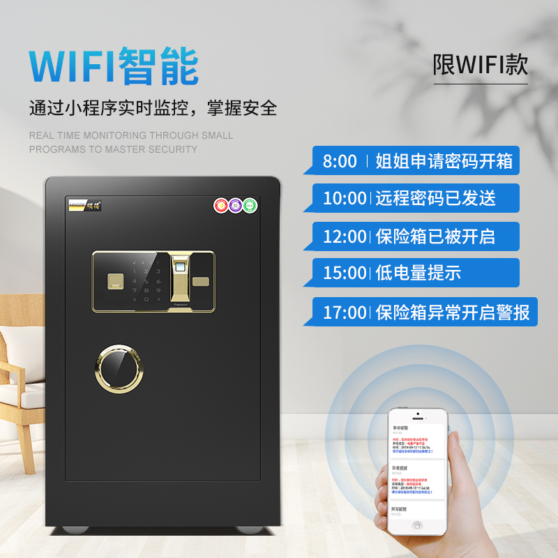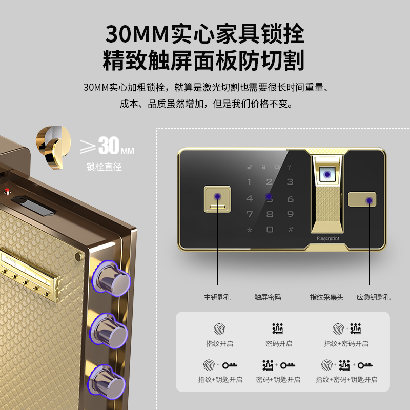 Mingde safe home small 25cm30cm office fingerprint password bedside table all steel anti-theft into the wall into the wardrobe mini invisible safe new alarm safe deposit box bedside table
