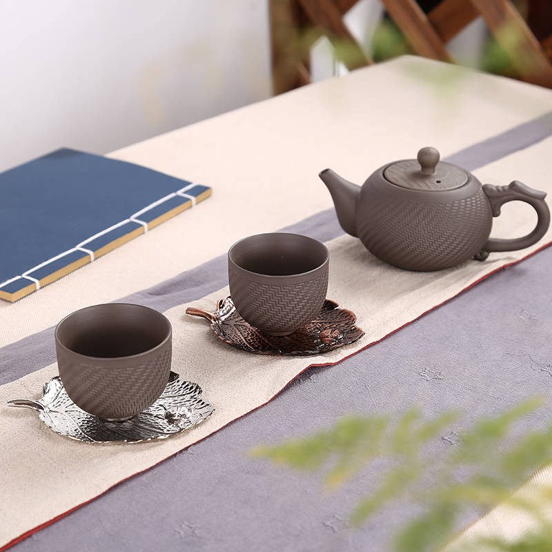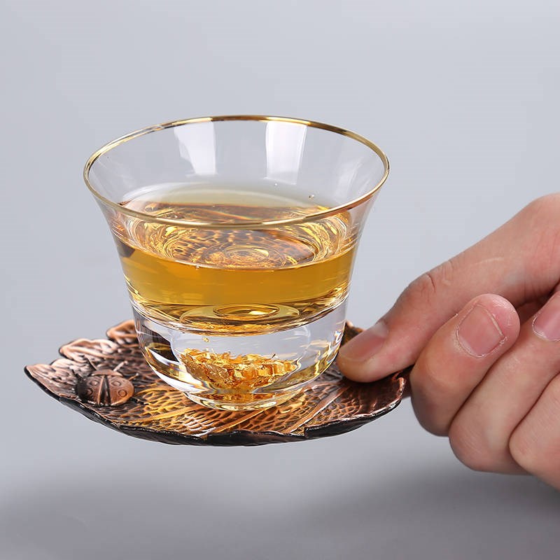 Tea tow Antique alloy teacup pad Teacup tray Anti-hot coaster Bronze tea cup pot holder Kung Fu tea road zero