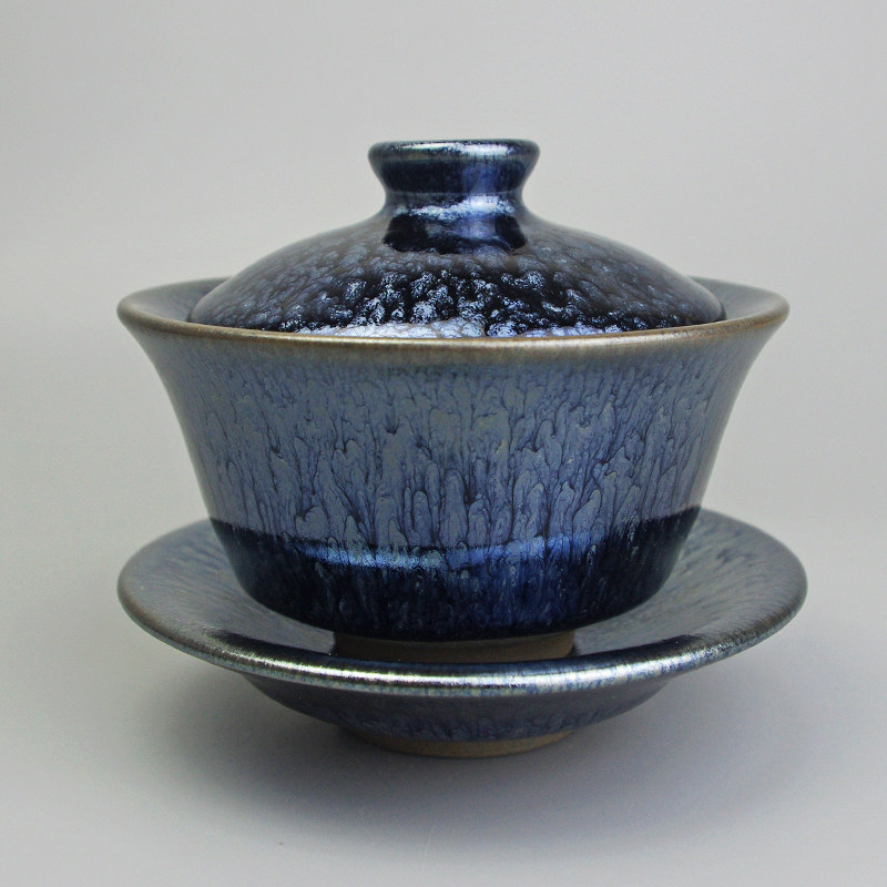 (Today's special price 49) (Blue and Hundred Flowers Cover Bowl) Golden Rabbit 3-only cover Bowl Tea Leaves three only cover Golden Partridge Three Only Cover Bowl Blue Hundred Flowers Cover Bowl Full of Star Three to cover a bowl of silver unscatharte