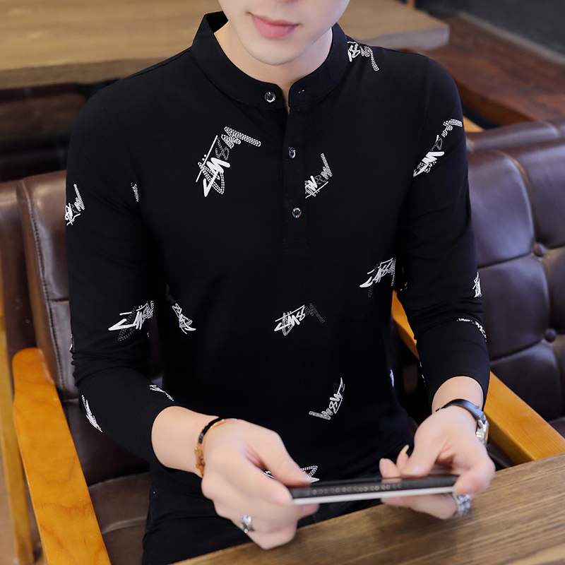 Spring warm autumn clothes men's tops one-piece cotton thin section collar long-sleeved men's underwear stand-up collar spring and autumn trend
