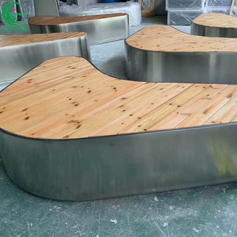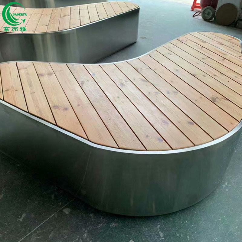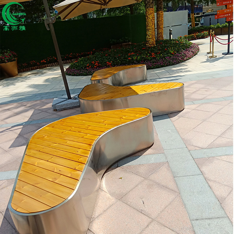 Stainless Steel Commercial Square Beauty Chen Casual Chair Public Seat Embalming Wooden Stool Park Chair Outdoor Furniture Custom