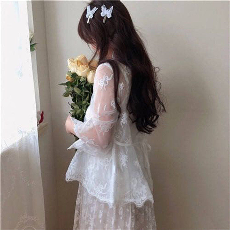 A pair of white lace hairpins, a pair of white lace hairpins, 4 white butterfly necklaces, a feather hairpin, a pair of white necklaces, a pair of white lace hairpins