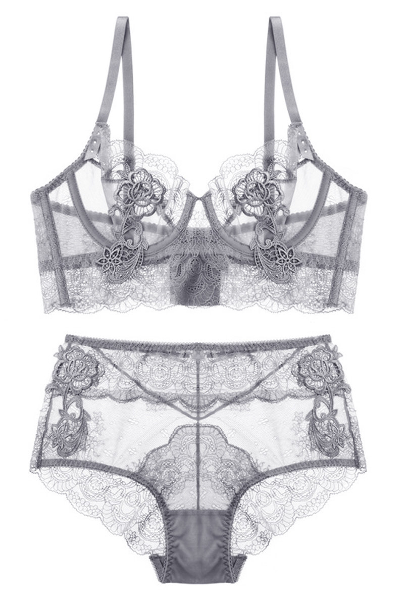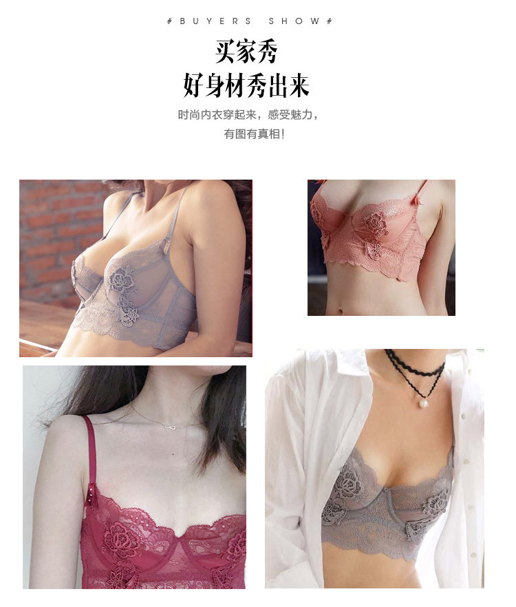 Victor's sexy Leah lingerie gathered women's sheer tulle big bra oversized ultra-thin lace set