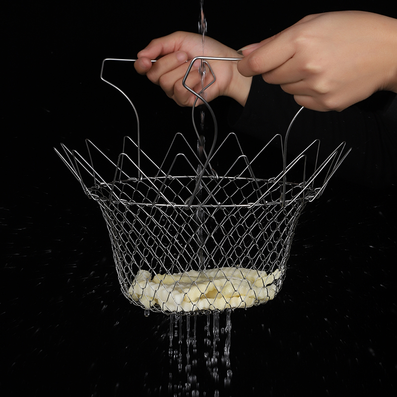 304 stainless steel frying basket Home Kitchen Fried Net Basket Folded filter Vegetable Drain Basket Drain Cooking Basket