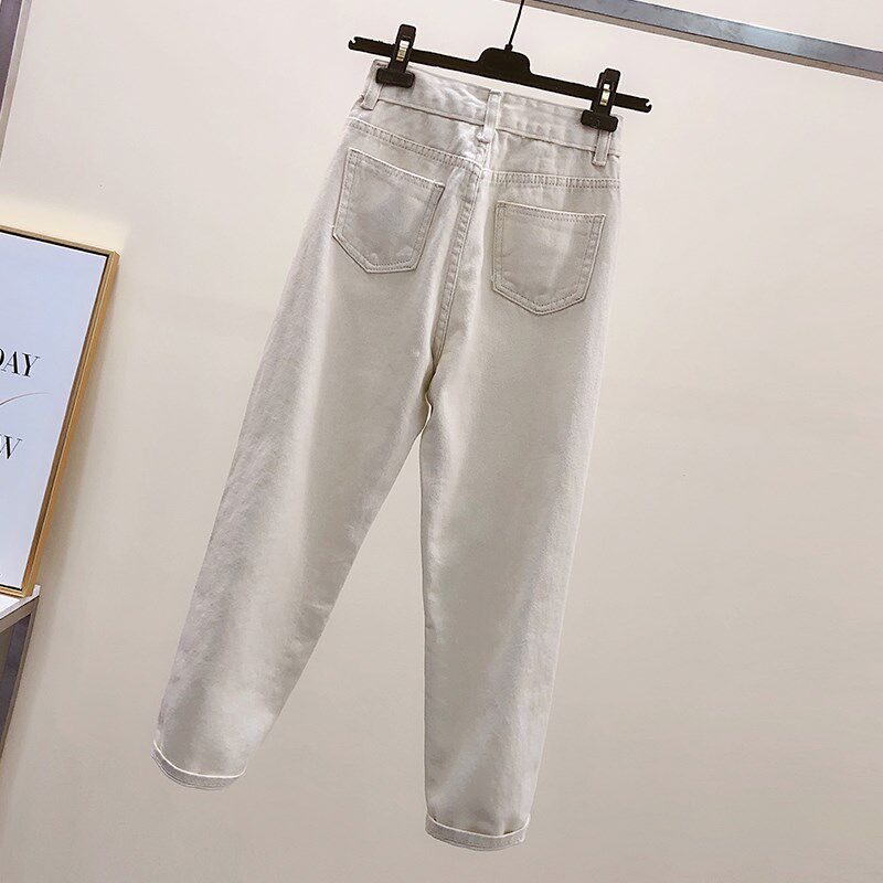 Korean Rice White Jeans Woman Straight Drum Loose Spring 2020 New High Waist Display Slim 90% Old Daddy Pants