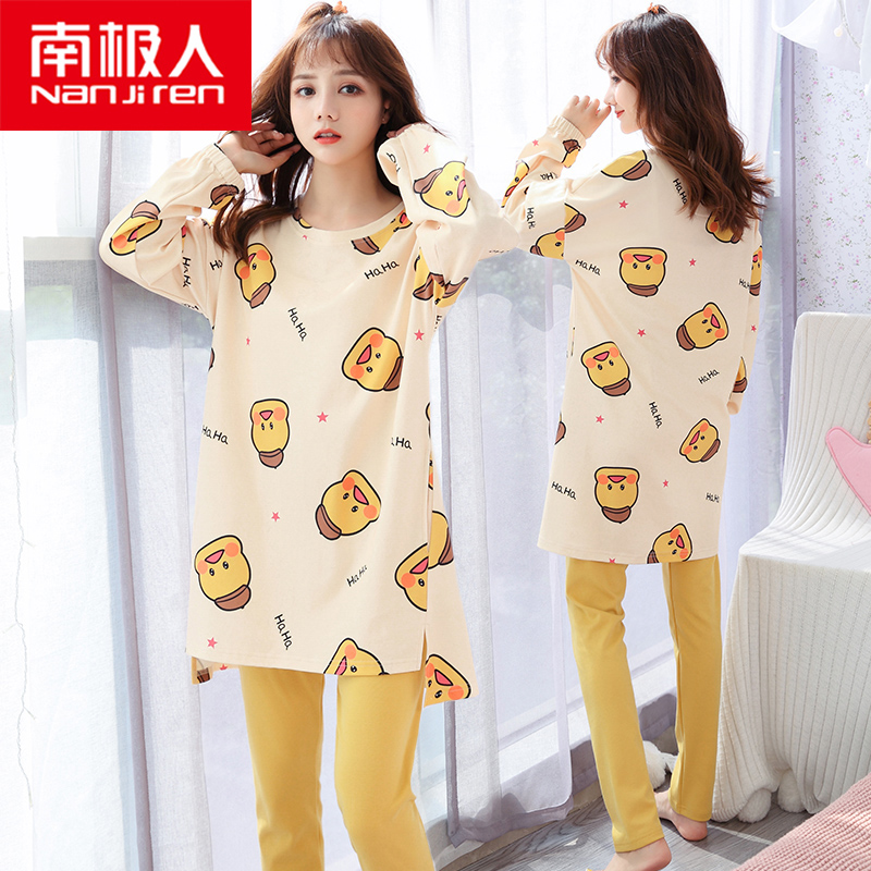 South Pole pyjamas women's pyjamas spring autumn season pure cotton long sleeve home South Korean version of sweet and medium long version of thin and medium style suit summer