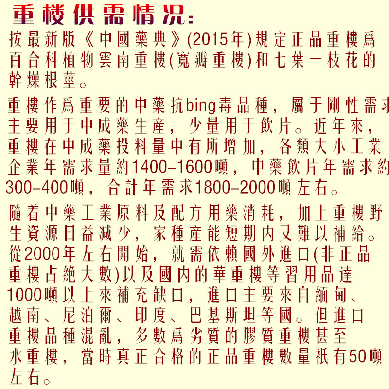 Chonglou Chinese herbal medicine Yunnan Qiye one branch pollen quality Yunnan Chonglou gold thread flea break branch flower head domestic 50g